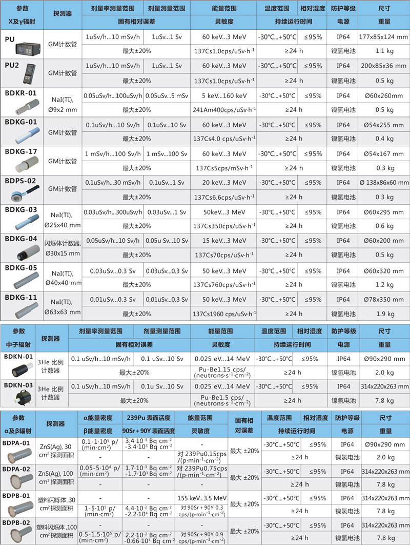 ?可測(cè)量多種射線α、β、γ、中子 和X 射線,并對(duì)這些射線進(jìn)行搜索